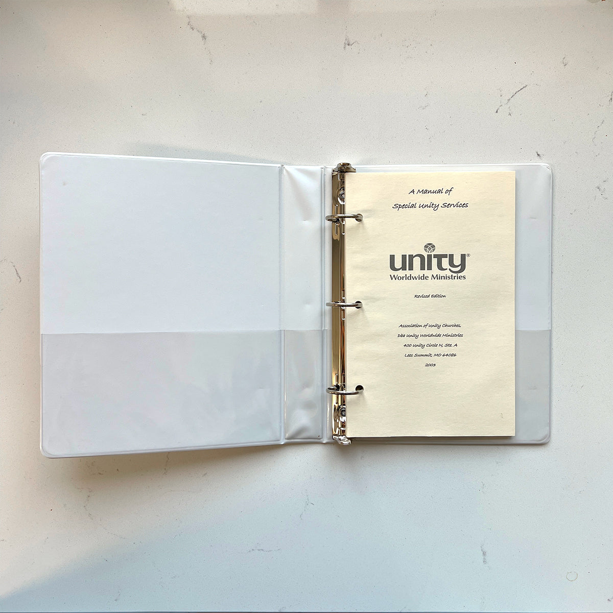 Wedding, christening, baptism, funeral, and other special services are prepared for your use in this convenient, loose-leaf 4.5" x 7" binder.